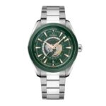 Seamaster Aqua Terra – a tribute to Omega’s rich maritime legacy Keep track of time anywhere in the world Presented in a 43mm stainless steel case paired with a matching bracelet Sun-brushed green dial with a vision of the Earth viewed from above the North Pole Water resistant to 15 bar (150 metres) TOUR THE WORLD Keep track of time wherever you are in the world with the Omega Seamaster Aqua Terra Worldtimer collection. This unique collection presents the teak-patterned dials seen elsewhere in the Aqua Terra collection, with the addition of a truly global influence. International destinations are listed around the dial and its outer ring, including the brand’s hometown of Bienne, Switzerland. At the very heart of the dial, the planet Earth is depicted via a cutting-edge view of the continents, achieved with advanced laser-ablation technology on a Grade 5 titanium plate. KEEP TRACK OF TIME AROUND THE GLOBE This 43mm timepiece features a polished stainless steel case paired with a matching integrated bracelet with a butterfly clasp. The impressive, sun-brushed green dial features vertical teak stripes, 18K Moonshine? Gold hands and indexes, and silvery circle of global destinations. At the centre of the dial sits a 24-hour, glass ring, divided into day and night sections. This international chronograph is powered by a Co-Axial Master Chronometer 8938 calibre movement for the ultimate precision, wherever you are in the world.
