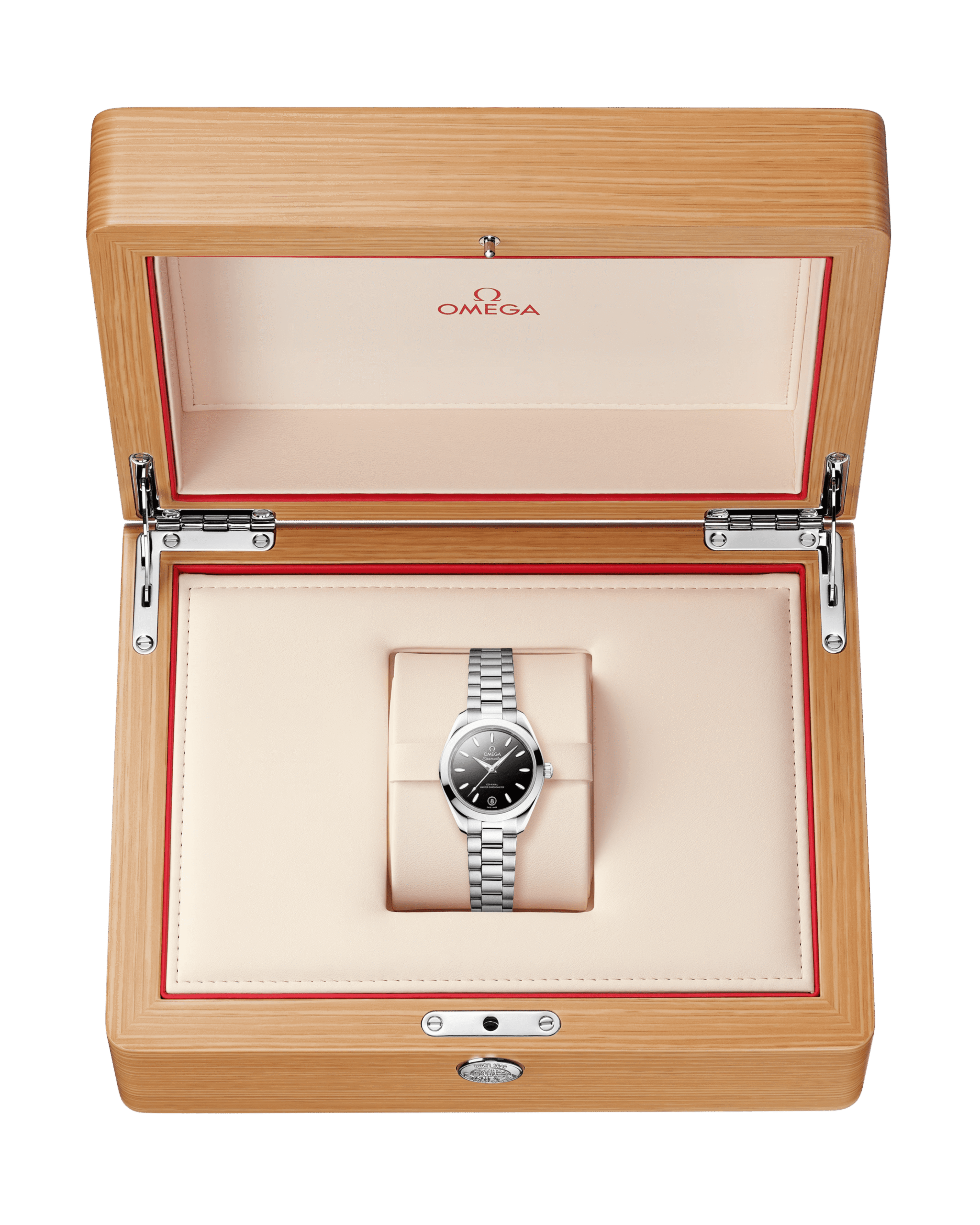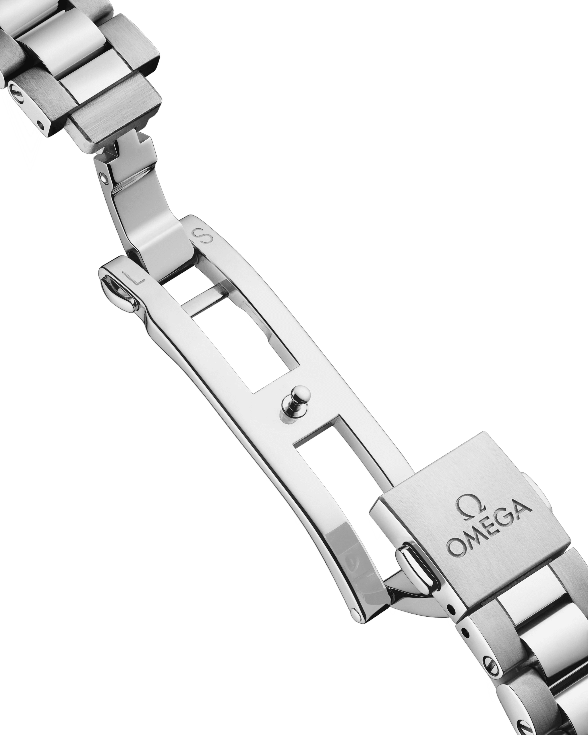 The watch is presented on an integrated stainless-steel bracelet with beautifully rounded polished-brushed links, a foldover butterfly clasp, and OMEGA??s easy comfort-adjustment system.