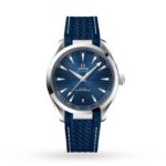 A tribute to Omega??s rich maritime heritage Seamaster heritage with 8900 calibre movement Water resistant to 15 bar (150 metres) 41mm stainless steel case paired with a blue structured rubber strap Master chronometer certified by METAS SOPHISTICATED OCEAN SPIRIT A tribute to Omega??s rich maritime heritage, the Seamaster Aqua Terra collection balances technical sophistication and ocean spirit. The 150m models offer a refreshing new look, with clean aesthetics, a new symmetrical case design, and Master Chronometer movements with extraordinary levels of magnetic resistance. These timepieces are further characterised by a patterned dial, inspired by the wooden decks of luxury boats. DISTINCT DESIGN This 41mm timepiece is presented in a symmetrical, stainless steel case, paired with a structured rubber stap, with a grey lining. The black dial features a date window at 6 o??clock, replicating the first Omega watch with a date window, released in 1952. The maritime influence can also be seen in the wave-edged design on the caseback. Power and precision are delivered by the 8900 calibre movement, with magnetic field resistance to 15,000 gauss.