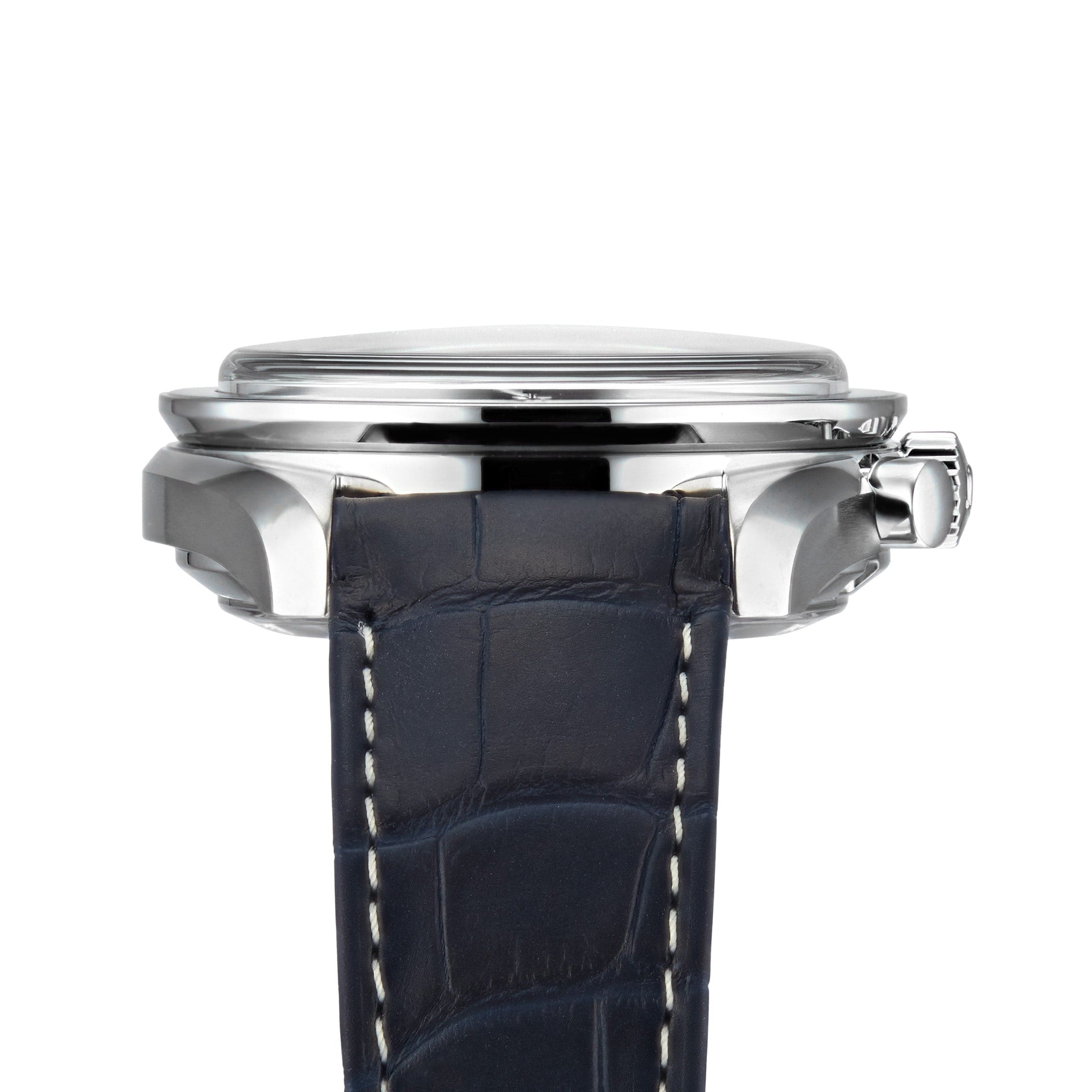 Paying tribute to Omega??s lunar history Accurate Moonphase indicator with two realistic images of the moon Speedmaster heritage featuring the 9908 calibre movement 44.2mm stainless steel case paired with a stainless steel bezel and bracelet Master Chronometer officially certified by METAS LOVED ON EARTH AND BEYOND The Omega Speedmaster was the first watch to touch down on the moon??s surface, so it??s only right that the Speedmaster Moonphase is not only capable of measuring every moment here on Earth, but also the phases of the moon. Celebrating a pioneering moment, this model features two realistic moon images, displayed on a microstructured, metallic crystal disc. If you look closely, you can even see Neil Armstrong??s iconic footprint. ULTIMATE PRECISION This 44.25mm model features a stainless steel case, paired with a striking blue leather strap and a blue ceramic bezel ring with a Liquidmetal? tachymeter scale. The blue, sun-brushed dial features rhodium-plated hands and hour markers, as well as two sub-dials. Delivering flawless precision, the 9904 calibre movement is officially certified and offers incredible performance. This timepiece is water resistant to 10 bar (100 metres).