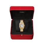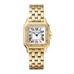 Panth??re de Cartier – a quintessential jewellery watch Embracing clean lines with a creative, linear softness Beautifully presented in a 27mm x 36mm case crafted from 18K yellow gold Silvered dial framed by radiant brilliant cut diamonds Complete with a graceful 18K yellow gold bracelet channelling the agility of the panther A STYLE ICON Supple and elegant, the Panth??re de Cartier is timeless and iconic. First created in the 1980s, the collection is characterised by the ultra-flexible bracelet, echoing the graceful movements of the panther – the Maison’s emblematic animal. A quintessential jewellery watch, the Panth??re aspires for clean lines, without losing a sense of creative, linear softness. BOLD AND GRACEFUL This iconic timepiece has become synonymous with Cartier’s bold yet graceful energy. Crafted from 18K yellow gold and accented with a blue sapphire-set crown, the 27mm x 36mm case features softly round edges that enhance its graceful form. The silvered dial plays host to blued-steel sword-shaped hands and Roman numerals, framed by a radiant diamond-set bezel. Inspired by the movement of the panther, the flexible steel bracelet completes the harmonious blend of luxury and practicality, ensuring comfort on the wrist. Powerful and precise timekeeping are delivered by the Quartz movement, while water resistance to 3 bar (30 metres) enhances functionality.
