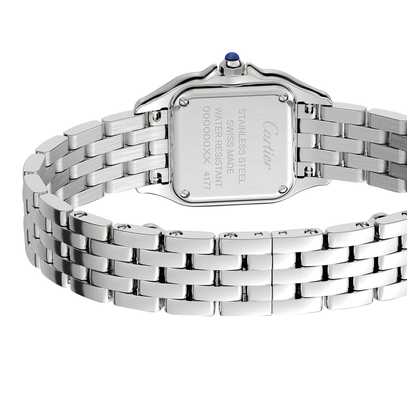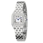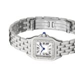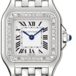 Panth??re de Cartier – a quintessential jewellery watch Clean lines elevated by a creative, linear softness Beautifully housed in a 23 x 30mm steel case set with brilliant cut diamonds Silvered dial with a signature Cartier aesthetic Secured with a graceful steel bracelet inspired by the movement of the panther AN 80S AESTHETIC A supple and elegant timepiece, the Panth??re de Cartier is timeless and iconic. Introduced in the 1980s and embracing the design trends of the decade, the collection is characterised by the ultra-flexible bracelet, inspired by the agile movements the Maison’s emblematic animal – the panther. A quintessential jewellery watch, the Panth??re prioritises clean lines, without losing a creative, linear softness. INSPIRED BY THE AGILITY OF THE PANTHER Elegant and refined, this iconic timepiece embodies Cartier’s daring allure. The 23mm x 30mm steel case features softly rounded edges that enhance the graceful design. Framed by radiant brilliant cut diamonds, the silvered dial retains the brand’s timeless aesthetic with blued-steel sword-shaped hands and classic Roman numerals. Powered by reliable Quartz movement, this model is water resistant to 3 bar (30 metres) and fastens securely with an agile steel bracelet.