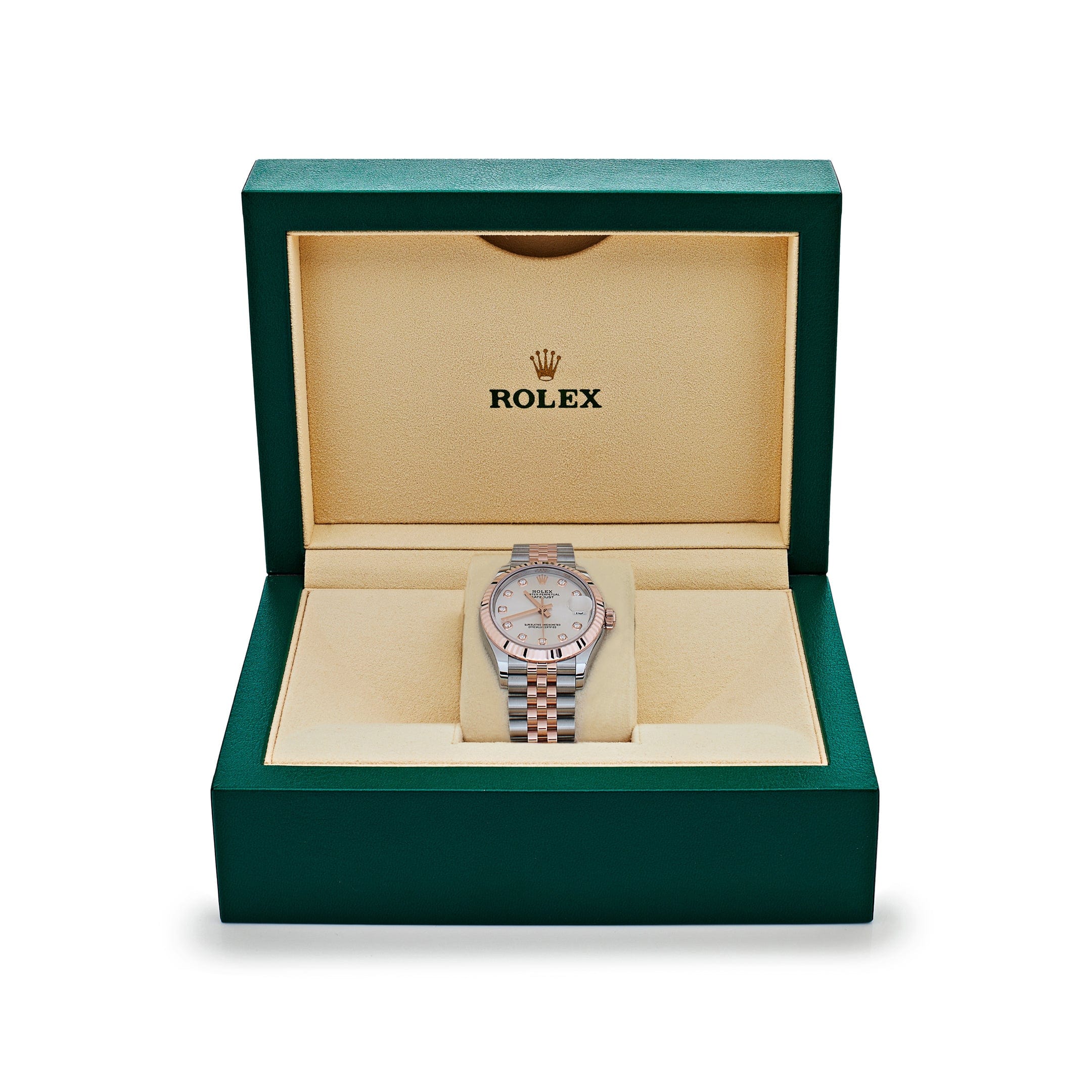 The Rolex278271 is a luxurious and refined 31mm ladies’ watch, crafted in?stainless steel and rose gold. The warm tones of the rose gold fluted bezel and Jubilee bracelet center links offer a graceful contrast to the cool, polished stainless steel case and outer links, resulting in an elegant, timeless aesthetic.