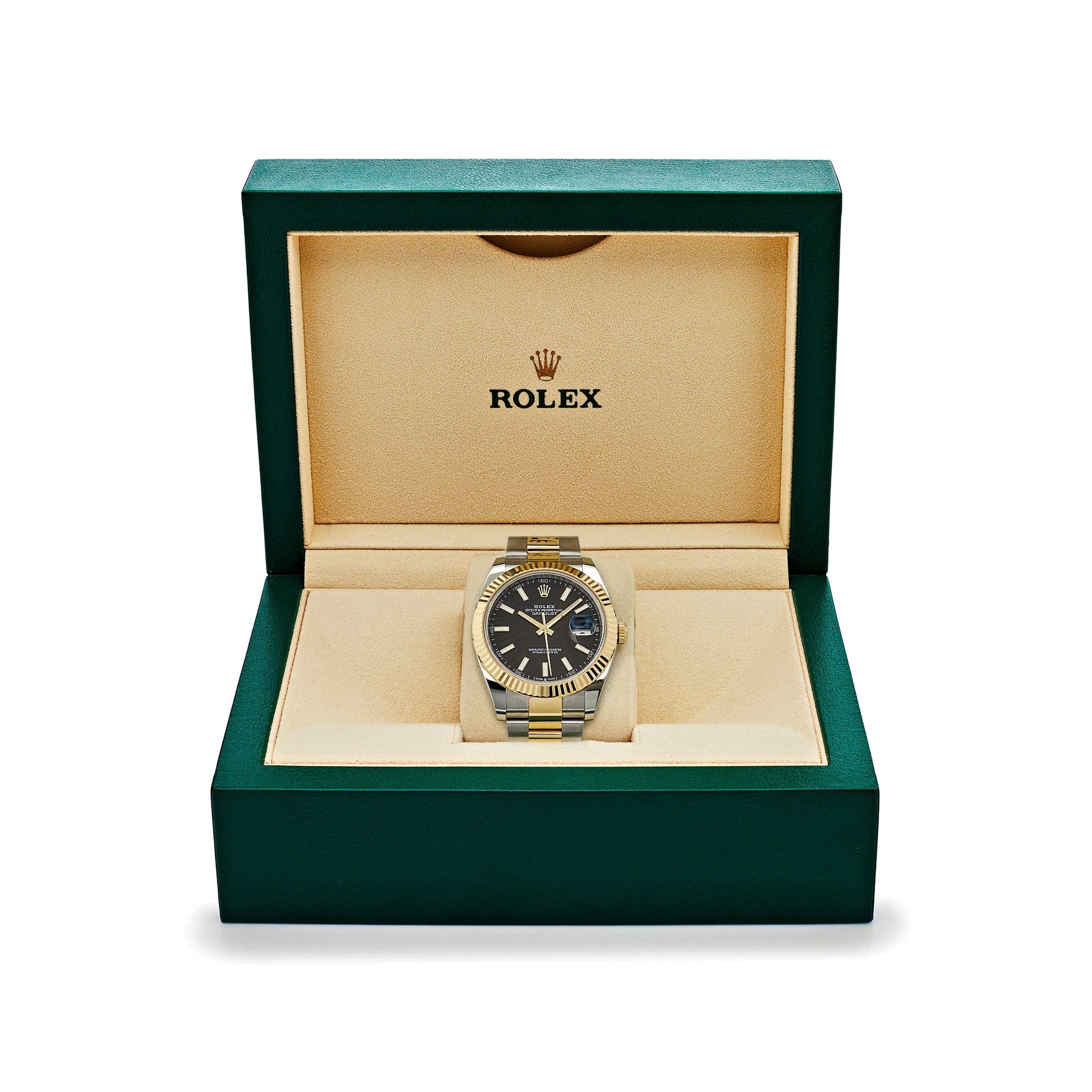 The Rolex 126333 is a bold and sophisticated take on the classic Datejust design, blending luxury with versatility. Its 41mm Oystersteel case is paired with an 18k yellow gold fluted bezel, adding a touch of refinement to this iconic timepiece.