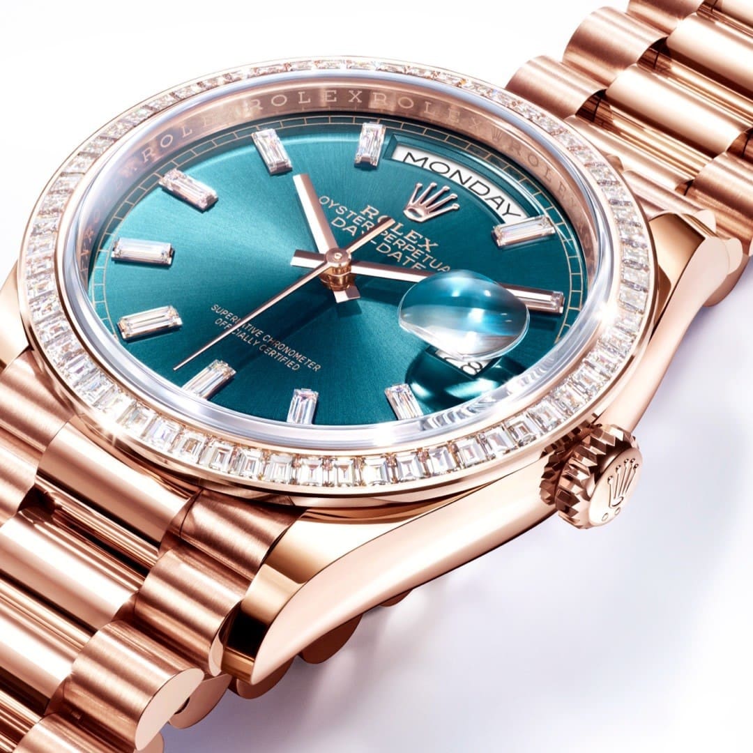 The Rolex 36 reference 128345RBR is a luxurious take on a classic, crafted from Rolex??s proprietary 18k Everose gold for a warm, enduring finish. This model features a sophisticated sundust dial that pairs elegantly with the Everose gold case, while diamond hour markers add a touch of brilliance. Framing the dial is a diamond-set bezel, bringing a level of refinement and radiance to the timepiece.