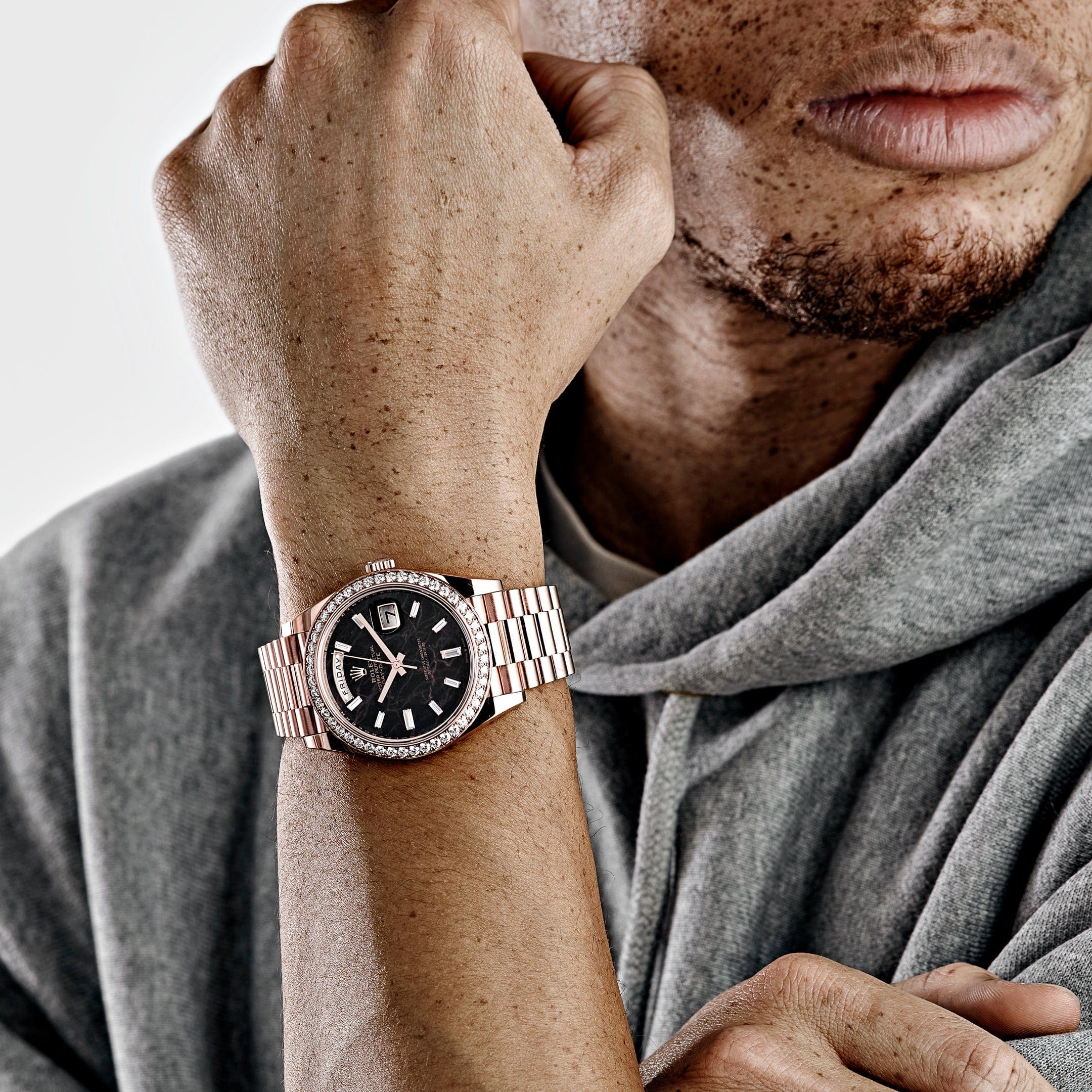 Signature features of the Day-Date collection include the iconic day display at 12 o??clock and the date window at 3 o??clock, both magnified by the Cyclops lens for exceptional readability. Paired with the prestigious President bracelet, known for its seamless comfort and polished three-link construction, the Day-Date 228235 is the epitome of refinement and exclusivity. Perfect for collectors seeking a timepiece that blends rare materials, intricate artistry, and timeless sophistication, this watch is a true statement of horological excellence.