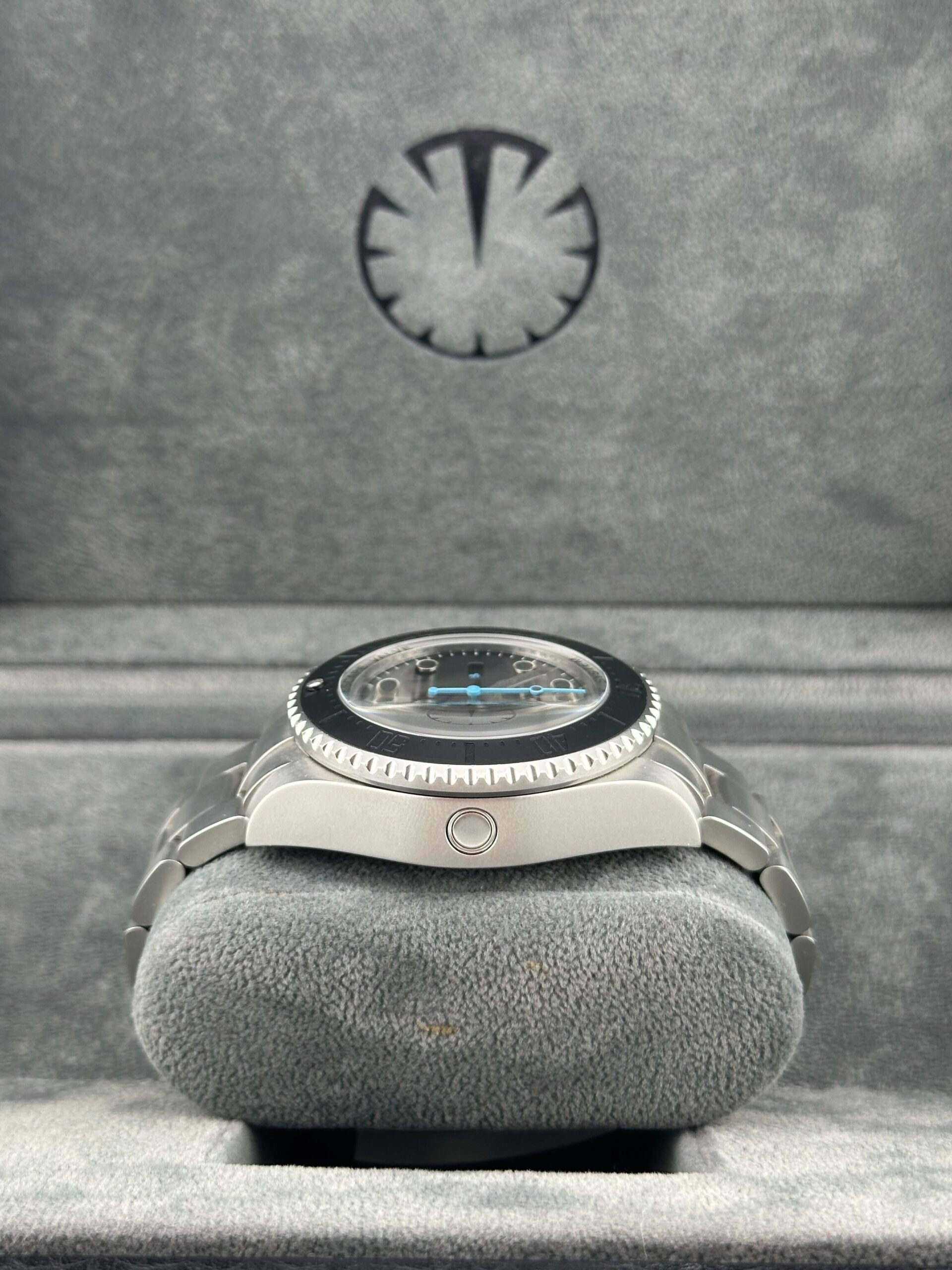 The Rolex Deepsea 116660 ‘Titan Black’ is a customized rendition of Rolex’s renowned deep-diving timepiece, distinguished by its exclusive blacked-out aesthetic achieved through a PVD coating. This particular model is not an official Rolex release but rather an aftermarket modification by Titan Black, a company known for personalizing luxury watches. The PVD treatment imparts a sleek, matte black finish to the robust 44mm stainless steel case and Oyster bracelet, enhancing its stealthy appeal while maintaining the original watch’s impressive water resistance of up to 3,900 meters.