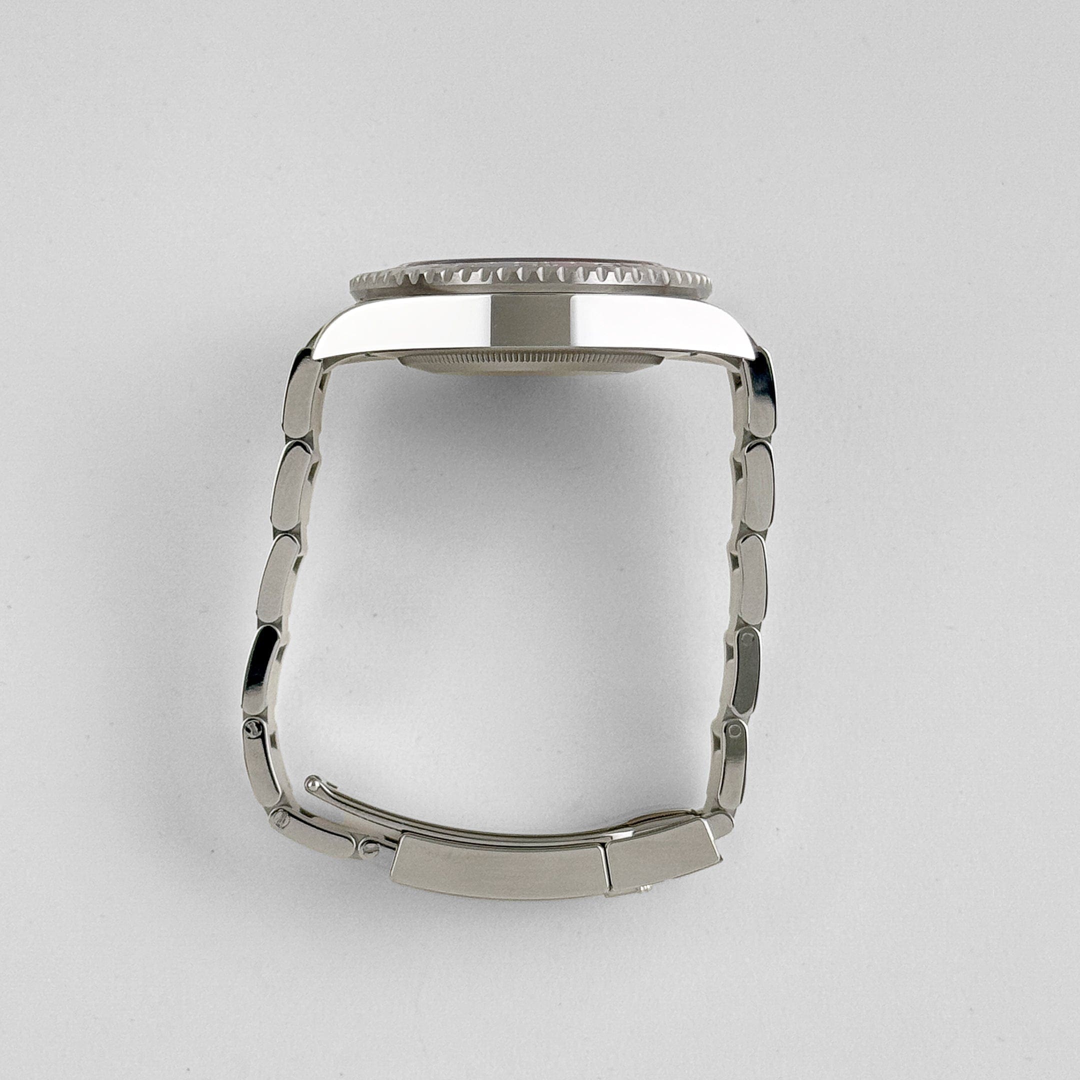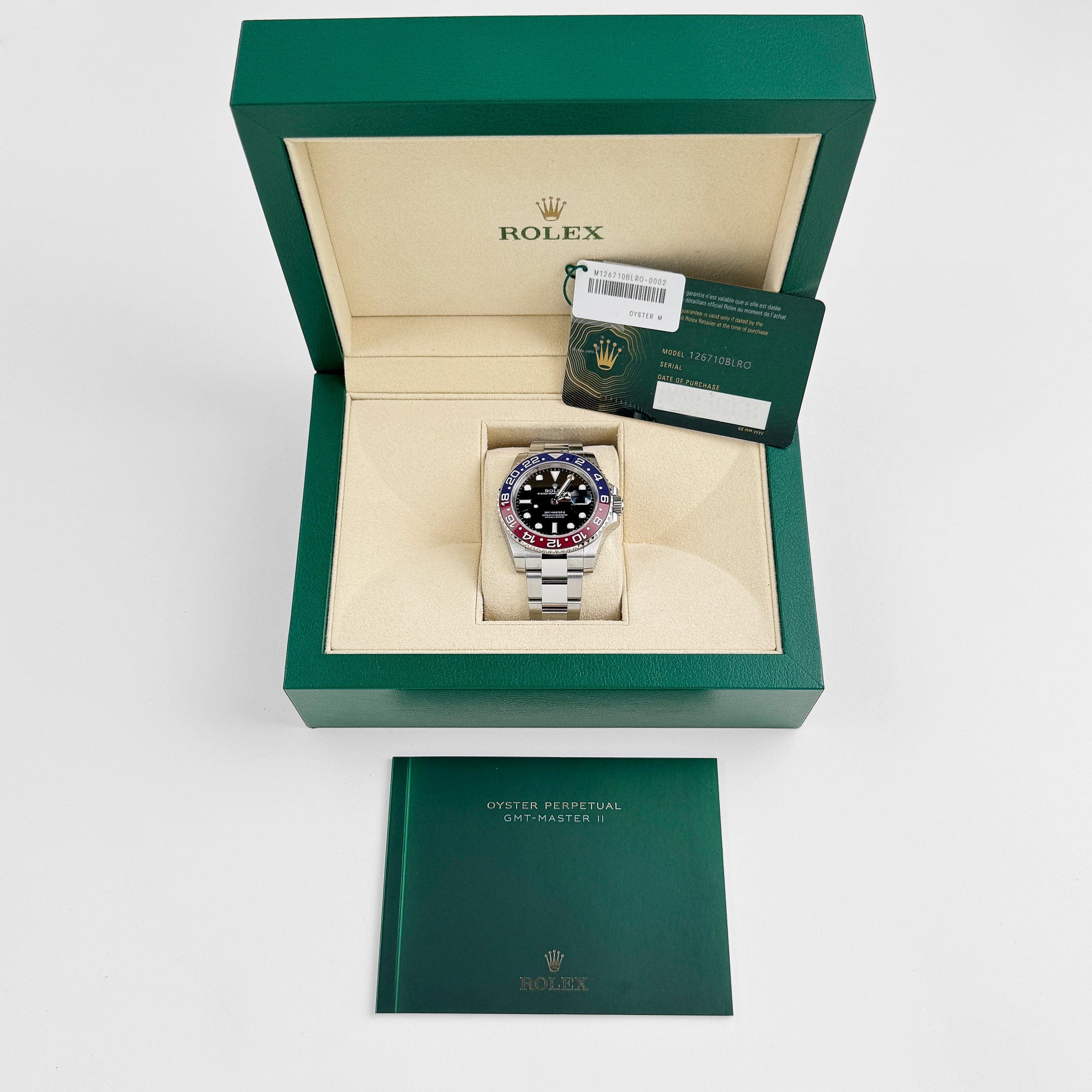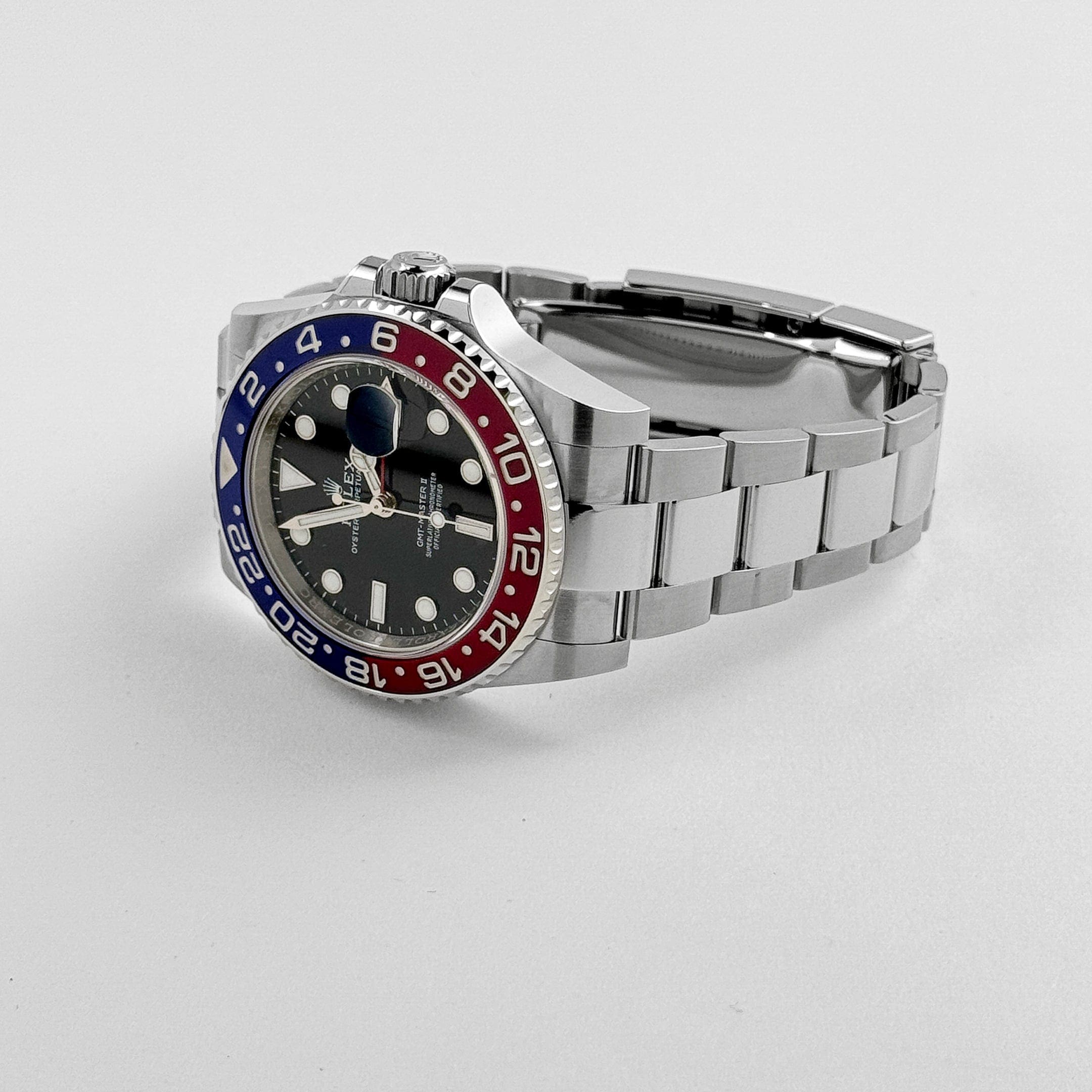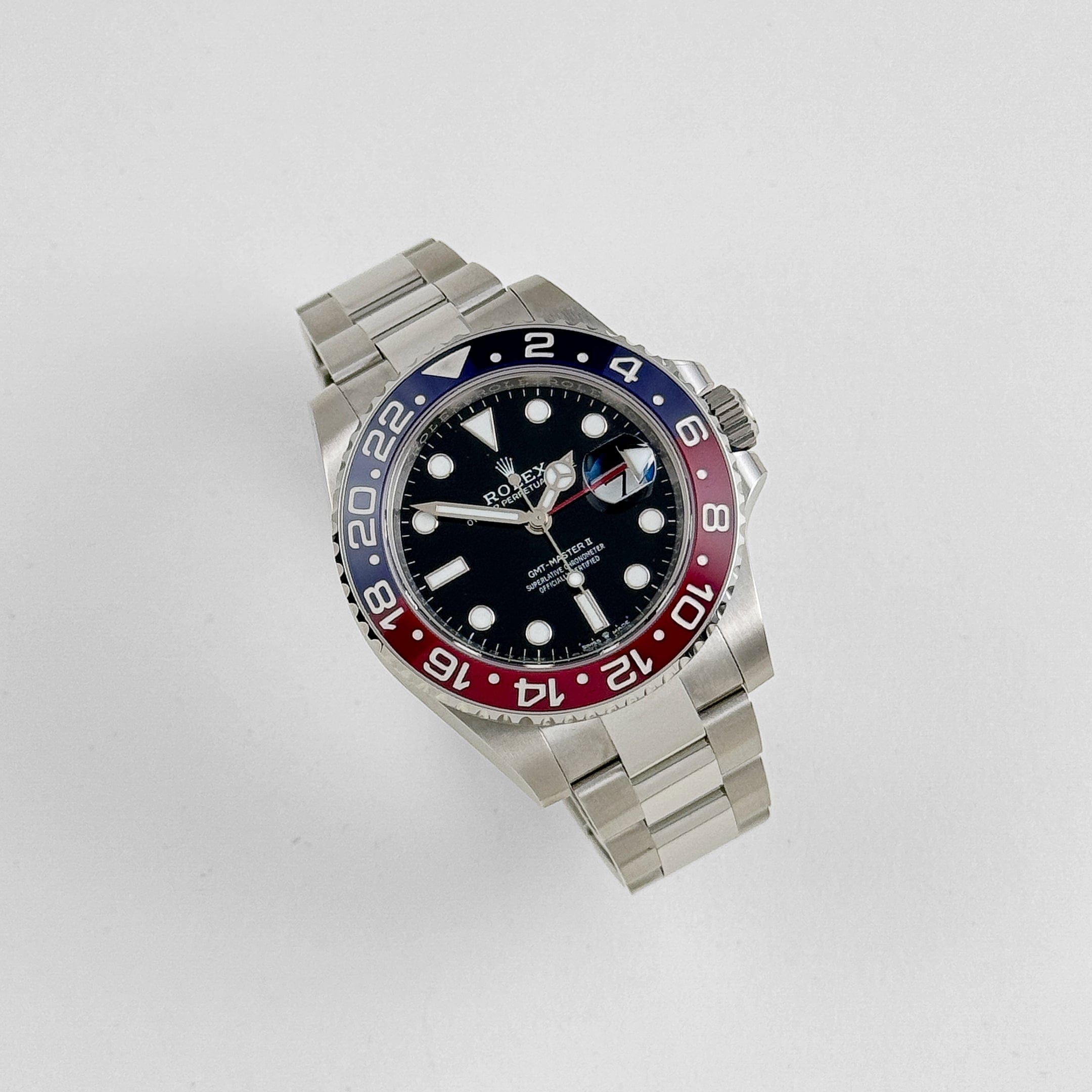 A modern icon in Rolex??s lineup, the 126710BLRO revives the legendary “” bezel in a striking Cerachrom execution. The red-and-blue colorway, historically associated with early GMT-Master models, is flawlessly rendered in scratch-resistant ceramic, offering exceptional durability while maintaining the vintage aesthetic collectors admire. Crafted from Rolex??s signature Oystersteel, the 40mm case balances robustness with elegance, complemented by the highly sought-after Oyster bracelet, a preference among purists for its solid, sport-driven presence.