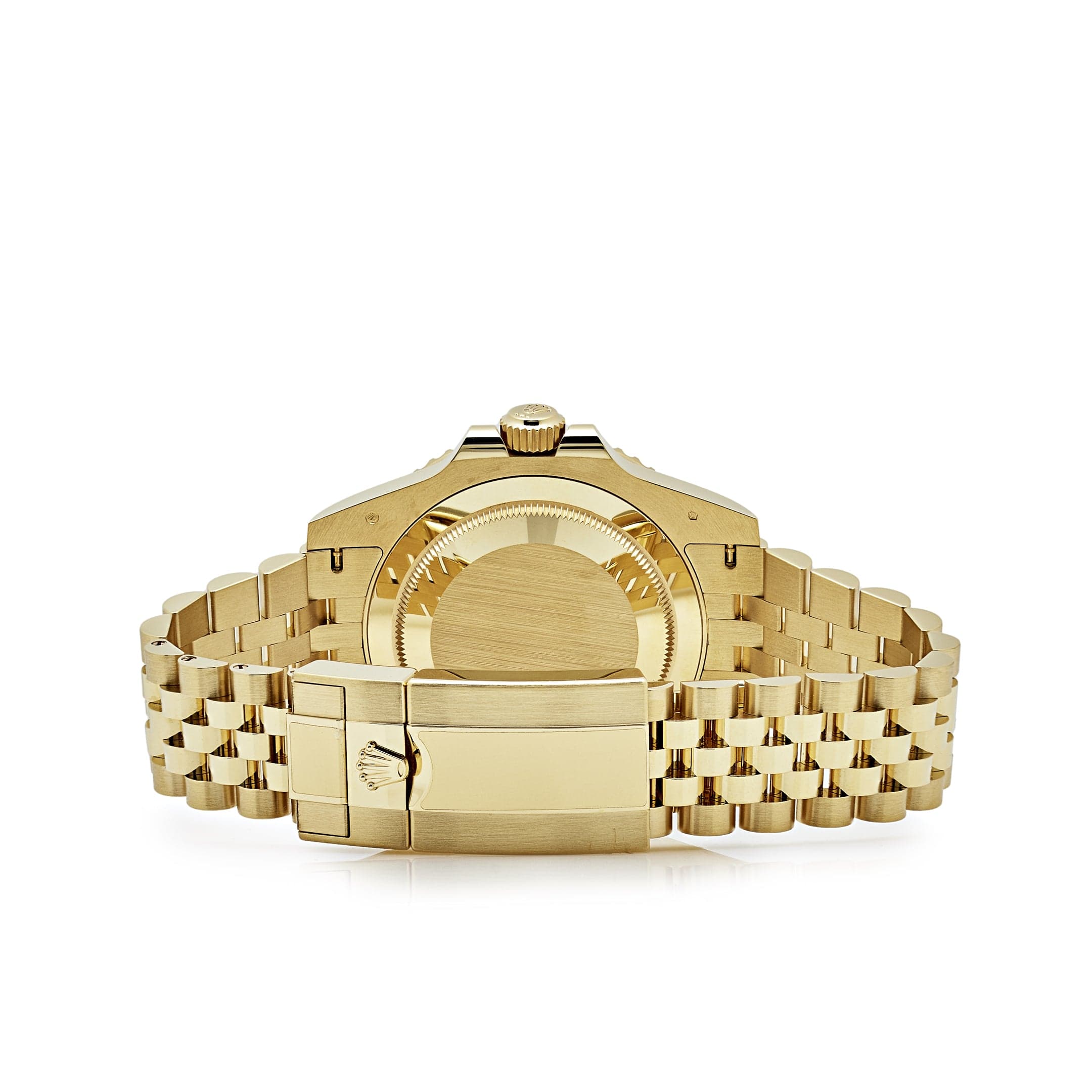 In addition to conventional hour, minute and seconds hands, the GMT-Master II features an arrow-tipped hand, which circles the dial once every 24 hours, as well as a bidirectional rotatable 24-hour graduated bezel. The watch comes on a yellow gold jubilee bracelet with a folding Oysterlock safety clasp.
