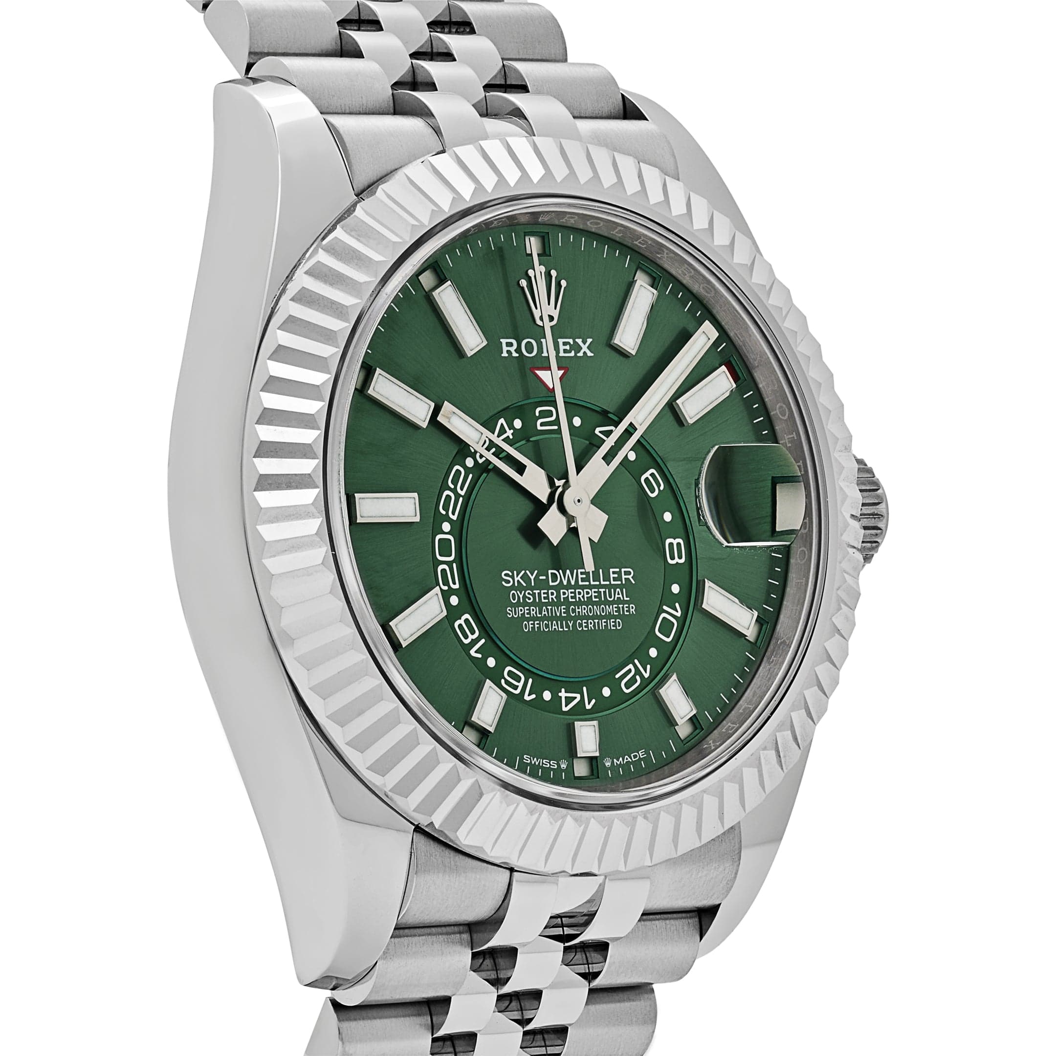 The watch is paired with a luxurious Jubilee bracelet, known for its five-link design and unmatched comfort. Powered by the state-of-the-art Caliber 9002, the Sky-Dweller 336934 delivers a 72-hour power reserve, making it the ultimate choice for collectors who demand functionality and elegance in equal measure.