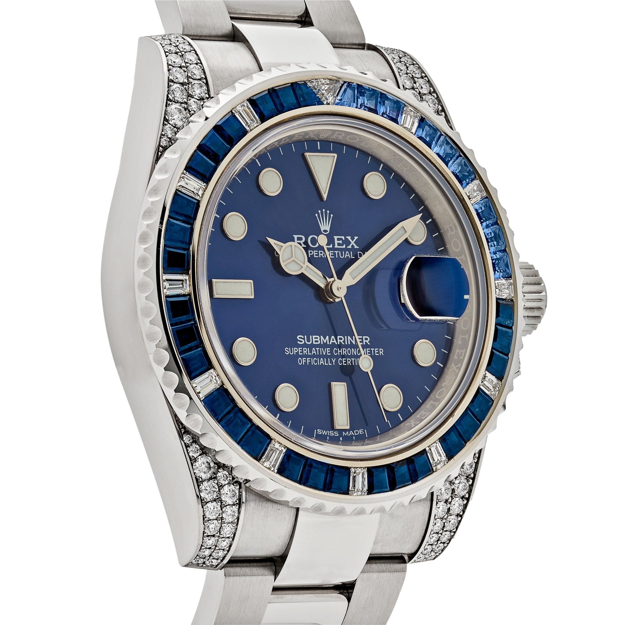 Powered by Rolex??s self-winding Caliber 3135, this Submariner delivers precision and a 48-hour power reserve. Water-resistant to 300 meters, it retains the durability expected of a professional dive watch. Completed with a solid white gold Oyster bracelet, the 116659SABR is the ultimate fusion of technical excellence and unparalleled elegance.