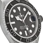 The?matte black dial?ensures maximum legibility, featuring Chromalight-filled hour markers and hands for enhanced visibility in low-light conditions. A bi-directional?black Cerachrom bezel?with raised numerals allows for precise time tracking, making it a practical tool for yachting and maritime adventures. Powered by the?Rolex Caliber 3235, the watch boasts a?70-hour power reserve?and Rolex??s hallmark precision. With its innovative use of titanium and modern, rugged design, the?Yacht-Master 226627?is a bold choice for those who seek both high performance and distinctive styling.