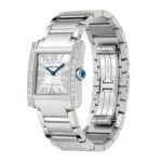 Tank Fran?aise – an enduring icon of design An inexhaustible capacity to evolve Elegantly set within a 32 x 27mm steel case set with 26 brilliant cut diamonds Silvered sunray dial showcasing Cartier’s classic blued-steel sword-shaped hands Powered with the accuracy and dependability of Quartz movement AN ENDURING DESIGN ICON Inspired by the design of a military tank seen from above, the Tank collection is governed by this clear graphic principle: the brancards reference the tacks, while the case represents the vehicle’s cabin. The resulting silhouette enables the design of the case to be integrated into an extension of the bracelet, creating a cohesive, uninterrupted aesthetic. Introduced in 1996, the Tank Fran?aise soon became a design classic. With its distinctive metal bracelet that complements the case, this updated model takes a new aesthetic and ergonomic approach, energising the ultra-profiled lines of the watch. A REFINED VISION Encased within a 32 x 27mm steel frame, the silvered sunray dial is elevated by the signature blued-steel sword-shaped hands and Roman numeral hour markers. 26 radiant brilliant cut diamonds totalling 1.09 carats add a touch of radiant scintillation to the robust design. Secured with a steel bracelet, a powerful Quartz movement ensures precise timekeeping.