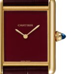 Tank Louis – striving for balanced design A symbol of timeless elegance Housed in a 33.7 x 25.5mm 18K yellow gold case secured with a semi-matt burgundy alligator leather strap Burgundy lacquer-effect dial with golden sword-shaped hands Powered by a reliable manual winding movement A SYMBOL OF TIMELESS ELEGANCE In 1917, Louis Cartier unveiled an iconic watch design, featuring two parallel brancards to create an entirely new silhouette. Worn by Cartier himself, the Tank Louis Cartier collection set the benchmark for all future Tank watches. Though defined by its bold rectangular shape and straight edges, the softened rounded lugs exemplify Cartier’s early influence on the style that would later become known as Art Deco. The result is a watch of enduring elegance and timeless appeal, epitomising Cartier’s dedication to refined luxury. A TRUE ICON Bringing together timeless design and luxurious detail, this model is crafted in 18K yellow gold. Beautifully complimenting the warm golden tones of the case, the striking burgundy lacquer-effect dial is adorned with golden sword-shaped hands, set beneath mineral crystal. A semi-matte burgundy alligator strap fastens securely with a gold ardillon buckle, while a manual-winding movement provides power and precision. Measuring 33.7 x 25.5mm and water resistant to 3 bar (30 metres), it embodies Cartier’s legacy of sophistication.